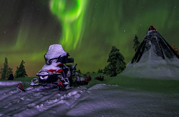 Experience the wilderness by driving a snowmobile and hunting the Northern Lights.