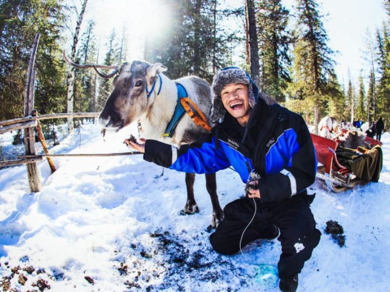Breakfast. Driving to Arctic Snow Hotel. Guided tour in the hotel. Enjoy warm beverages in a restaurant where the tables are made of ice. Driving to a reindeer farm. Driving reindeers on the yard and getting the reindeer driving licenses. Lunch at the farm. Driving the last part to Rovaniemi on a big river. Sauna and overnight in a good hotel.