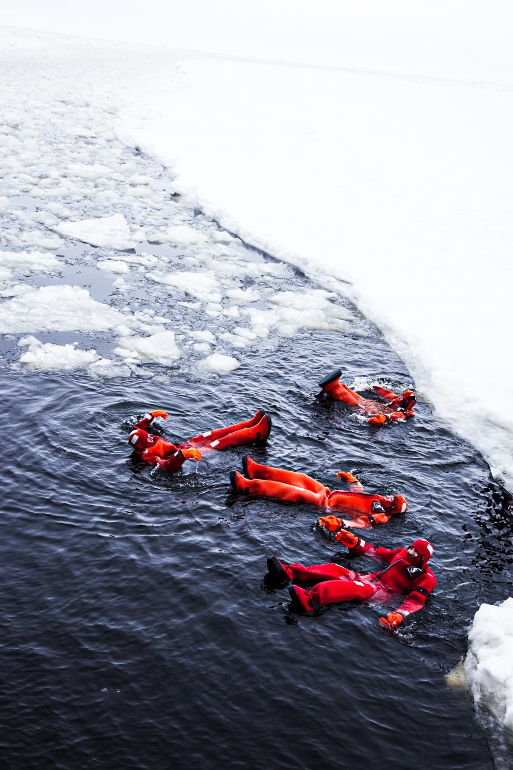 Try floating amongst the ice of the frigid cold sea! You’ll be warm and safe inside a special survival suit.