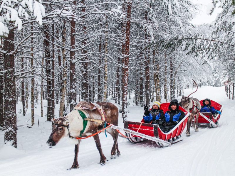 We have a trip to a local reindeer farm and a great sleigh ride there. After the safari the reindeer herder delivers the reindeer driving licenses as certificates of the visit. Light lunch included. Christmas tree decoration at the reindeer farm! See a huge tepee where people may sit around a living fire.